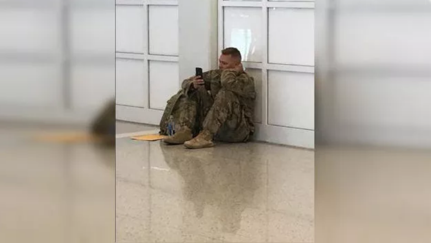 BRANDON, Miss. - A photo of a soldier delayed in an airport is going viral this week after a fellow traveler snapped it and explained the soldier was watching the birth of his daughter on FaceTime.
