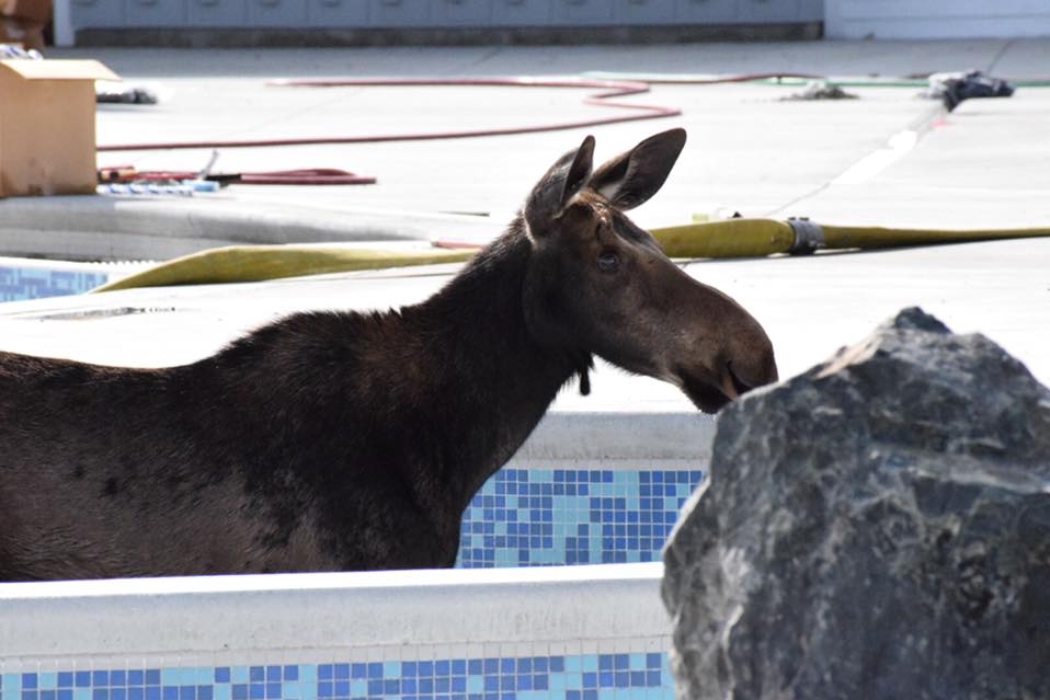 BUTTE - A moose calf is making waves after taking a dip in a new water park. The calf was spotted in the new Butte Ridge Waters park over the weekend, and Jenise Cockhill shared these photos she snapped.