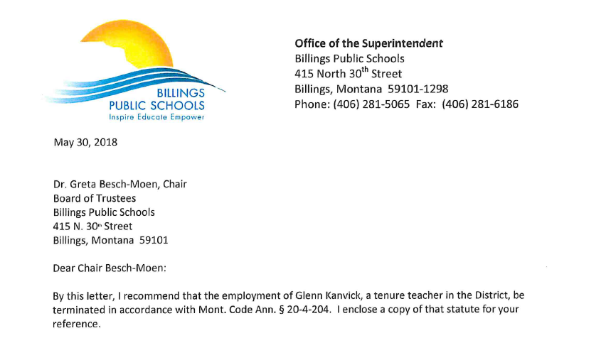 UPDATE: A special called meeting scheduled for Tuesday morning to discuss Superintendent Terry Bouck's recommendation to terminate Glenn Kanvick has been canceled.